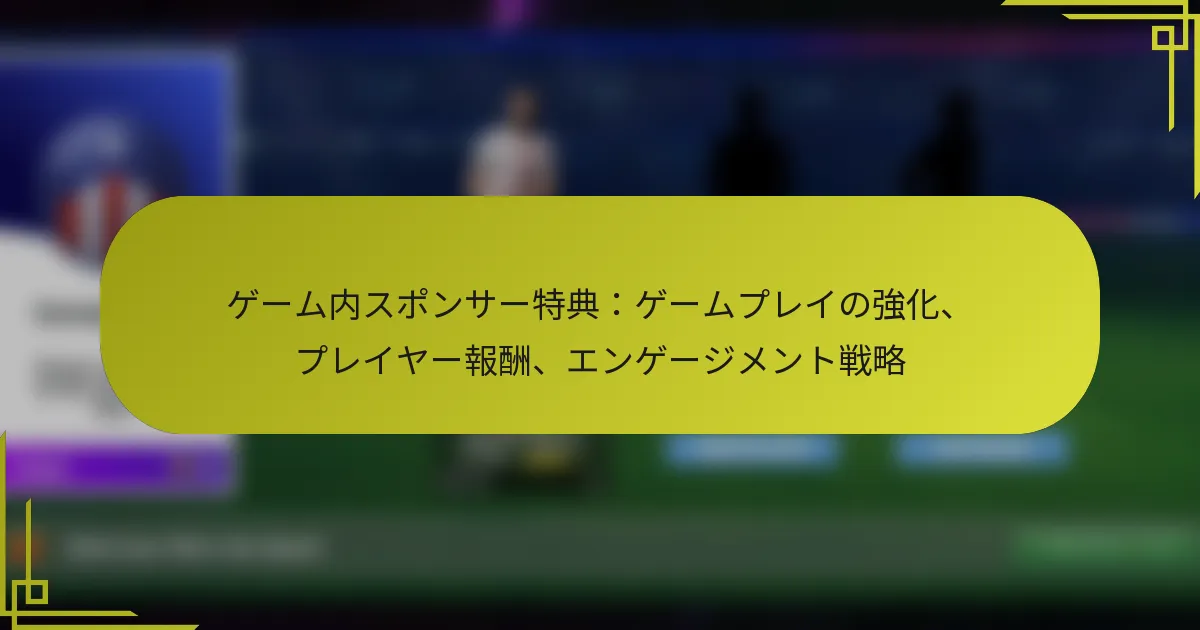 ゲーム内スポンサー特典は、スポンサーと関与することでプレイヤーに報酬を提供することによってゲームプレイを向上させます。効果的な実装には、プレイヤーの楽しさとスポンサーの可視性のバランスを取る戦略的アプローチが必要であり、両者がコラボレーションから利益を得られるようにします。
